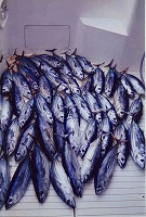トンボシビもカツオと一緒に毎年1月頃から日本列島に回遊してきます。カツオとメジとビンチョウが混じって釣れますのでカツオの仕掛も一緒に流しておくと、これらが入れ混じって釣れますので豪快なトローリングが楽しめます。初期のトンボシビは魚体が大きく20キロから30キロもあり豪快なトローリングが味わえますので、一度経験した人は毎年この時期になると、寒さをこらえて出漁します。