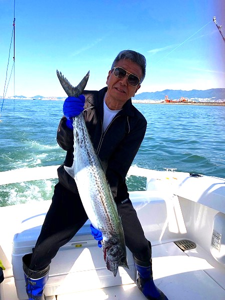 サワラ・サゴシは朝早くが一番ヒット率が高くて朝の薄暗い時間から食い付いてきます四月ごろから産卵のため浅場に昇りのサワラが釣れ始め、翌年の1月中頃まで浅場で居付きますのでこの期間がトローリングのシーズンとなります。この時期は表層5m~10mを回遊していますのでサワラテンテン仕掛をそのまま曳けば面白いほど釣れます。四月頃から産卵のために浅場に昇って来るサワラの時期は表層水温が少し低いので水温の安定した中層を回遊してきます。この時期のサワラをヒットさせるためには、仕掛を水深20mから40mに落して曳くことが大切です。サワラテンテン仕掛を曳く場合もビショマを継ぎ足して下ろしたり、サワラ鉄砲仕掛で水深を20mから40mに下ろして4~5ノットで曳きます。六月頃から十二月末までは表層水温が高くなっていますので水面から5m~10mと比較的上層を回遊していますので、サワラテンテン仕掛を船速6~8ノットで広範囲に曳き回せば誰でも簡単に沢山、釣れる魚で非常に美味しい魚です。この機会に、ぜひとも挑戦していただきたいトローリングです。