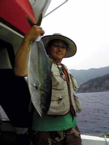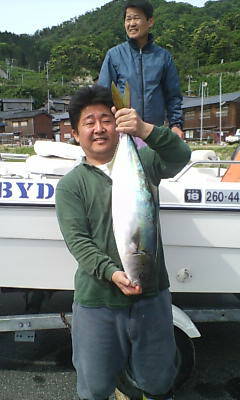 (60cmのクーラーに全然入らなかったです。)出港地の引縄漁の漁師さんの話では、経ケ岬辺りでは、この時期がメジロの最盛期なんですが、今年は定置網には多少入るが曳き釣りには全然食わないと話しておられました。逆に、ポイントやタナやら詳しく聞かれました(笑)