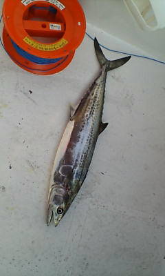 24日朝5時頃、宮津栗田漁港から出て博打岬辺りでトローリングで曳き始めました。朝一のヒットは7時ごろにサゴシが一本掛かりました。(写真左側)