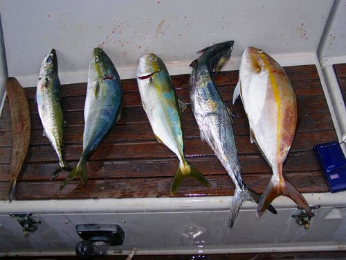 もちろん秋にはサワラのほかにイナダ、ショゴ、メジ、カツオなど多彩な魚が釣れます。